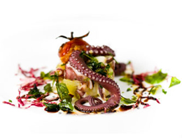 Una Ciabattina Mediterranea di nome e di fatto, se guarnita con una fettina di carpaccio di polipo.